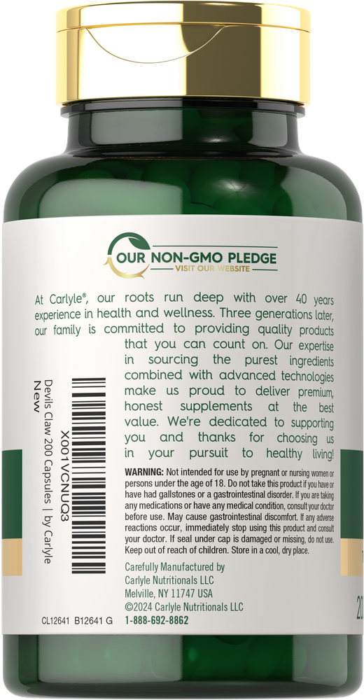 Erleben Sie die Vorteile der Teufelskralle von Carlyle, die das Äquivalent von 2000 mg pro Portion in schnell freisetzenden Kapseln bietet! Unser fortschrittliches Kräuterergänzungsmittel ist glutenfrei und gentechnikfrei, ohne künstliche Aromen oder Süßstoffe und ist eine hervorragende Ergänzung für jedes Wellness-Programm.