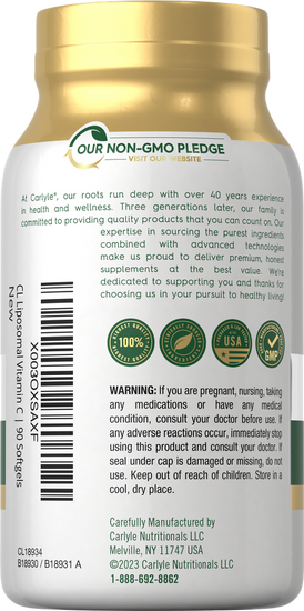 Unsere Expertise in der Beschaffung der reinsten Zutaten in Kombination mit fortschrittlichen Technologien macht uns stolz darauf, hochwertige, ehrliche Nahrungsergänzungsmittel zu einem besten Preis-Leistungs-Verhältnis zu liefern. Carlyle Liposomales Vitamin C Komplex ist ein Beweis für unser Engagement für Exzellenz, hergestellt mit hochwertigen Zutaten, die im Wohlbefinden verwurzelt sind. Danke, dass Sie uns auf Ihrem Weg zu einem gesunden Leben gewählt haben.