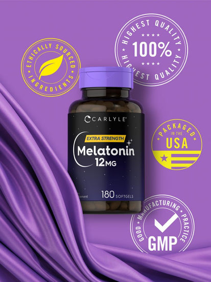 Das extra starke Melatonin von Carlyle enthält 12 mg Melatonin und ist die perfekte Ergänzung für Ihre Abendroutine. Unsere schnell freisetzenden Weichkapseln enthalten keine künstlichen Süßstoffe, Aromen oder Konservierungsstoffe, was sie zu einer großartigen Wahl für Männer und Frauen überall macht!