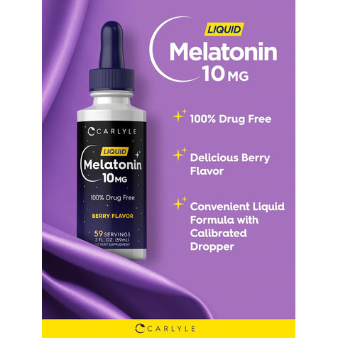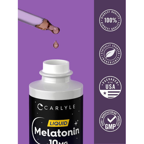 La melatonina liquida ad alto dosaggio di Carlyle ha una formula concentrata che fornisce 10 mg di melatonina di origine esperta per porzione per supportare il ritmo circadiano del tuo corpo. La nostra formula vegetariana è non-OGM, senza glutine, con un delizioso sapore di bacche che adorerai.