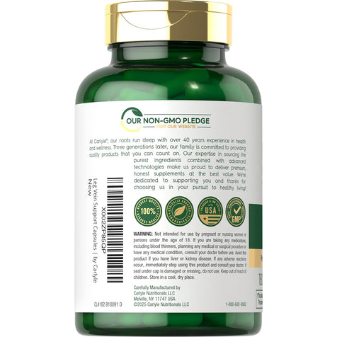 Il Supporto per le Vene delle Gambe Carlyle è l'integratore definitivo per la salute delle vene delle gambe.* La nostra formula senza glutine e non OGM presenta potenti estratti vegetali in capsule a rilascio rapido. Sono inoltre inclusi Estratto di Ippocastano ed Estratto di Semi d'Uva per supporto aggiuntivo. Ottieni oggi un valore superiore con la nostra fornitura di 180 capsule!