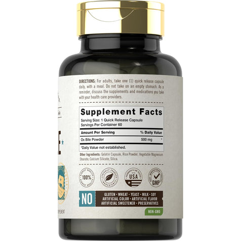 La Bile di Bue può ora essere trovata in vari formati di integratori come pillole, capsule, masticabili, polveri, compresse, liquidi, gomme, estratti e softgel. La Bile di Bue di Herbage Farmstead offre 500 mg di polvere di Bile di Bue per porzione in capsule a rilascio rapido ed è testata per garantire massima purezza, potenza e qualità.