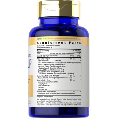 Carlyle's advanced formula includes a Potent Herbal Complex Blend which features Lion’s Mane Mushroom, Bacopa, Guarana, Rhodiola, and Gingko Biloba Extract. Quick release softgels also provide a high-potency source of Folate and Vitamin B-12 along with 665 mg MCT Oil per serving. Rounding out this unique formula is a powerful Amino Derivative Blend consisting of GABA, N-Acetyl Cysteine, Acetyl L-Carnitine HCl, L-Theanine, and Alpha Lipoic Acid plus BioPerine Black Pepper Extract for additional support.