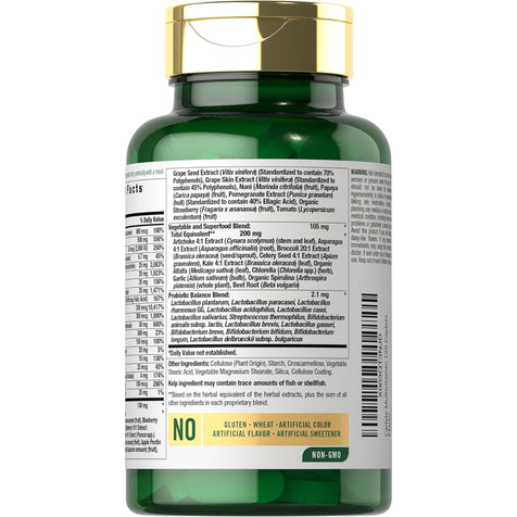 Experience superfoods in a whole new way with Carlyle Superfoods Multi! Our unique formula features 20+ fruits and veggies, plus probiotics. Coated caplets are fortified with an Antioxidant Fruit Blend, Vegetable and Superfood Blend, and a Probiotic Balance Blend. It's gluten free and non-GMO, making it the perfect multivitamin for both men and women.