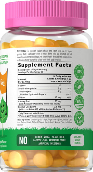 Carlyle’s Probiotic was formulated to deliver the most optimal support for your kid’s lifestyle! Our formula features 2.5 mg of Bacillus Coagulans, (which contains 500 million effective cells.***) Vegan gummies are bursting with tropical flavor and only 2g of sugar. They are gluten and dairy free, making it an honest supplement you can trust for your children!