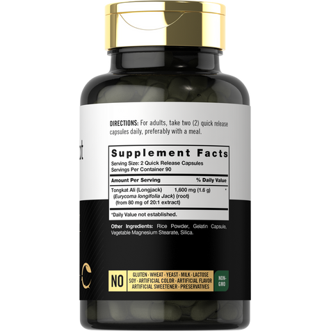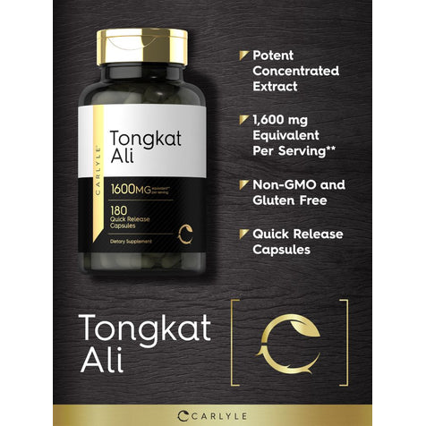 Carlyle's Tongkat Ali is a powerful form of this exotic herb, featuring the equivalent of 1,600 mg of Longjack Root per serving in quick release capsules. Our formula is gluten free and non-GMO, made with with no artificial flavor, color, sweetener, or preservatives, making it the perfect addition to any routine!